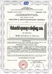 Certificate of non-destructive testing, issued by České dráhy, a.s.